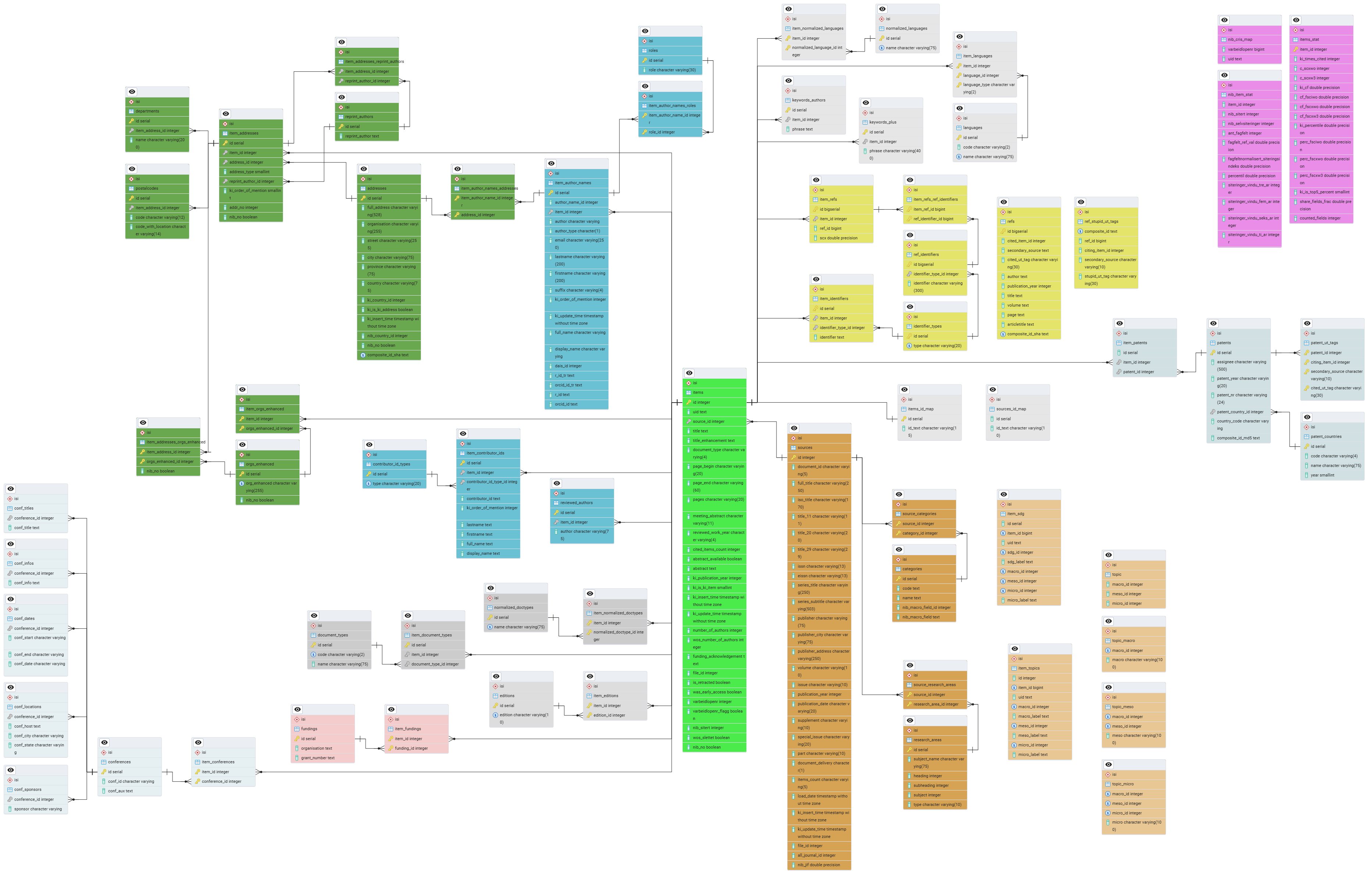 - nib_views.mv_wos_items_authordetails - Items matchet mot NVA/Cristin med forfatter/forfatteradresse, en per rad